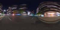 A vibrant night scene in the heart of New York City. Blurred images capture the energy and motion of the city streets, with streaks of light creating a captivating visual effect. The symmetrical lines and urban architecture add to the metropolitan charm.