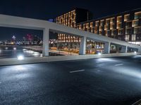 A cityscape of Holland at night, showcasing modern architecture and high-rise buildings. The illuminated streets and artificial lights give a vibrant feel to the urban design. This metropolitan area epitomizes city life in Europe.