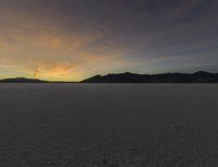 This is an image of a calm and peaceful desert landscape in Utah. The photo was taken at dawn, and the sky is clear, with a few clouds near the horizon. In the distance, majestic mountains rise against the clear sky. The desert sand stretches out, creating a serene and emotional atmosphere. In the foreground, there is a body of water, reflecting the dark and mysterious night sky. The surface of the water is still, mirroring the mountains and creating a sense of tranquility. This stunning landscape captures the beauty of nature in Utah.