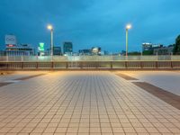 A view of the cityscape of Tokyo at night. The urban design incorporates open spaces, paved surfaces, and street lights that illuminate the city. The artificial light creates a beautiful contrast against the dark night sky.