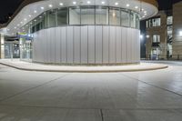 This stunning photo captures the modern architectural beauty of a large building in Toronto, Canada. The city's vibrant night lights illuminate the low-rise mixed-use structure, showcasing its sleek facade. The building's symmetrical design creates a sense of balance and harmony. The glass windows and artificial light contribute to the urban atmosphere and city life. The photo showcases the city's urban design and the busy transport hub surrounding the building. This image represents the dynamic and exciting city of Toronto at night.