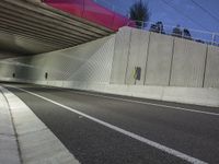 A long exposure shot of a tunnel at night with no headlights, portraying an empty and desolate urban landscape. The city tunnel is illuminated only by streetlights, casting a eerie glow against the dark sky.
