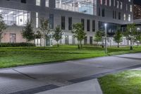 Night in Toronto: Illuminated Buildings and Green Grass on the Street