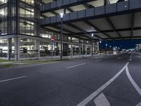 This stock photo captures the beauty of Berlin's modern architecture at night. The image features a city road with sleek buildings, bridges, and underpasses illuminated by artificial lights. The well-lit parking lots and the airport in the distance contribute to the metropolitan vibe of this urban setting. Explore the vibrant infrastructure, thoroughfares, and public spaces of Berlin in this captivating image. The photo is a perfect depiction of the city's metropolitan area and reflects the modern vibe of Europe's capital of art and culture.
