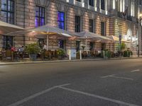 Night view of Berlin's vibrant city life. Classic architecture and neon lights illuminate the streets. Mixed-use buildings and cafes create a lively urban atmosphere. Explore this lively European city and its thriving restaurant and bar scene.