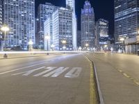 A stunning night view of downtown Chicago, Illinois. The cityscape is illuminated by the lights of skyscrapers and streetlights. The iconic bridges and high-rises create a unique architectural landscape in this metropolitan area.