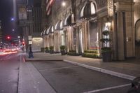 This stock photo features a captivating view of a city street at night in Los Angeles, California, USA. The vibrant cityscape is illuminated by scattered street lights, creating a captivating display of artificial light. The busy road, with its smooth asphalt surface, is filled with cars passing by, adding to the metropolitan allure. The classic architecture of the buildings and storefronts lining the street exude a sense of class and elegance. In the distance, you can catch a glimpse of the iconic Beverly Hills neighborhood. This image is perfect for illustrating urban infrastructure, city life, or even showcasing the high-class atmosphere of a hotel or shop in a bustling metropolis.