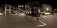 A night view of a quiet city street in Wellington, New Zealand. Classic architecture and street lights create a low-light urban ambiance. The building in focus is a hotel in New South Wales, Australia.