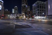 This stock photo features a stunning night view of modern architecture in the bustling city of Charlotte, North Carolina. The image showcases a very big empty area with buildings in the background, illuminated by artificial lights. The road and crosswalk add to the urban ambiance of the metropolitan area. This image captures the essence of a vibrant cityscape, where business and leisure intertwine. The Charlotte Convention Center and downtown area are prominent features in this captivating scene. Perfect for illustrating concepts such as urban development, city life, and modern architecture in Charlotte, North Carolina, USA.