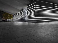 This stock photo features a captivating night view of modern architecture in New York City. The city lights illuminate the concrete and asphalt structures, creating an urban landscape. The monochromatic color scheme adds a touch of elegance to the scene, with light streaks and motion blur adding a dynamic element. The futuristic architecture and structural elements showcase the city's innovative design. Perfect for showcasing the city's urban infrastructure, this photo captures the essence of New York City's vibrant atmosphere.