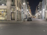 This is an image of a night scene in Berlin, Germany. The photo captures the architectural beauty of the city, with residential buildings and houses lining the streets. The open spaces are adorned with trees and vegetation, creating a harmonious blend of nature and urban design. The facade of the buildings is illuminated by street lights and artificial light, giving the city a vibrant atmosphere. In the foreground, an automobile with its tires and wheels on the asphalt road surface adds to the dynamic energy of city life. This photo represents the classic architecture and bustling nightlife of Berlin, a vibrant city in Europe.
