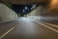 This is an image taken at night in Chicago, Illinois, USA. The photo captures a straight road with asphalt surface and concrete street. The streetlights illuminate the urban landscape, creating streaks of light as cars pass by. The motion blur of the vehicles adds a sense of movement and energy to the picture. The highway tunnel in the distance adds to the urban design and infrastructure of the city. This photo encapsulates city life in Chicago, with its dark atmosphere and artificial light creating a unique and vibrant cityscape.