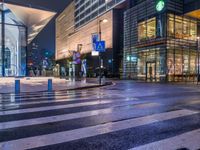 Nighttime Cityscape with Pedestrian Crossing and Streetlights