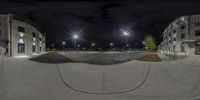Nighttime Cityscape: Skateboarding in a Lit Parking Lot