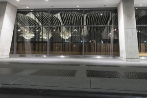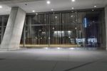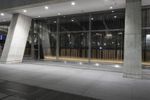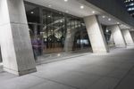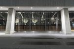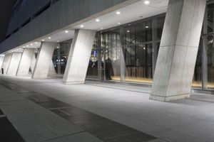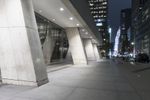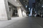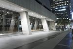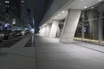 A panoramic view of the bustling streets of downtown New York City at night. The city's iconic architecture is reflected in the glass walls of corporate headquarters. Cars drive through the illuminated alleyways, creating a vibrant urban atmosphere.