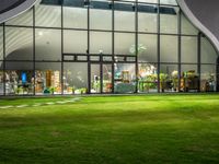 Modern architecture and urban design come alive in Taiwan's cities. This photo showcases a night scene in Taichung, with a large white building featuring a big glass door and vibrant plants inside. The artificial light adds to the city's allure.
