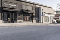 A picturesque neighborhood in North York, Ontario. The charming houses and storefronts line the streets, inviting tourists to explore. The clear sky provides a beautiful backdrop to the city's architecture and vibrant plaza.