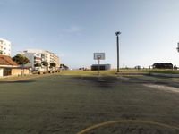 A coastal basketball court in Portugal offers a unique open space with ocean views. The asphalt surface shines under the clear sky, capturing the spirit of coastal sports in Europe.