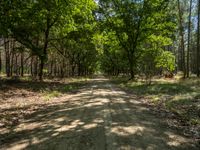 This image captures the rugged beauty of a gravel path in Berlin, surrounded by a dense forest of tall trees. The road winds through the stunning natural landscape, providing an off-road experience for nature enthusiasts. The dirt road contrasts with the lush greenery of the forest, creating a picturesque scene. This photo depicts a peaceful day in Berlin, where one can explore the beauty of nature on this scenic track.