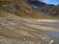 This image captures the rugged and scenic landscape of the Austrian mountains. The clear sky and open space provide a stunning backdrop to the dirt tracks and gravel roads that wind through the mountain range. The terrain features rocky slopes, plateaus, and valleys, with a glacier visible in the distance. This location is a popular destination in Europe for outdoor activities and recreation. Whether arriving by foot or off-road vehicle, visitors will be enchanted by the natural beauty and adventurous opportunities that await. Experience the thrill of exploring this breathtaking Austrian mountain landscape.
