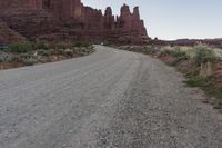 A dirt road winds through the Utah desert, surrounded by red rock mountains. The rugged landscape of the national park showcases the unique geology of the area. A perfect day to explore off-road in Canyonlands.