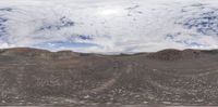 a man riding a snow board over top of a mountain of dirt and rocks below a blue sky