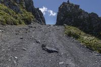 Scenic off-road track in the highlands of New Zealand's North Island. Steep slopes, rugged terrain, and a gravel road surface provide a challenging adventure. Mountain ranges and cloud-covered landscapes add to the natural beauty.