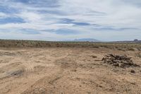 This image captures the rugged and open landscape of Utah, USA. The vast expanse of the dirt field is interrupted by stacks of rocks, while the distant mountains create a stunning backdrop. The red rock formations and the vast plain contribute to the unique charm of this desert landscape. The gloomy grey sky and the cumulus clouds add to the dramatic atmosphere. This photo showcases the beautiful and untouched nature of the San Rafael Swell region in Utah.