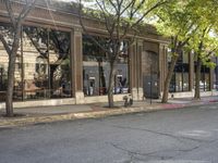 A view of a classic architecture building in Salt Lake City, Utah. The building's facade, made of iron and surrounded by trees, stands tall in the urban landscape. A bustling business district with shops, cafes, and public spaces can be seen on the road.