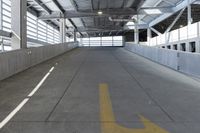 This is an image of a parking garage in Toronto, Ontario, Canada. The architecture of the building is characterized by straight lines and a modern design. The concrete structure is complemented by asphalt-covered roads and parking lots. The parking garage features multiple levels, accessed through entry and exit ramps. The metal roof and steel construction give the building a sleek and sturdy appearance. This photo captures the entrance ramp to the parking garage, with the ramp's incline visible. It represents the urban landscape and infrastructure in Toronto, Ontario.