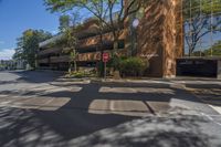 a street view of the side of a building at a crosswalk or the corner