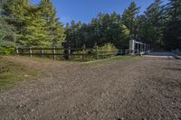 This image shows a day in Ontario, Canada, with a landscape featuring a combination of natural elements and man-made structures. The scene includes a road surface made of sand, asphalt, and concrete, surrounded by grass and vegetation. In the background, there is a lake with a bridge crossing it. The image captures the open spaces and peaceful atmosphere of Ontario. The sand street and concrete street highlight the different textures of the road. A split rail fence adds a touch of rustic charm to the scene. This photo represents the diverse landscapes found in Toronto, Ontario, Canada.