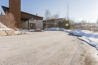 This is an image of a residential area in Ontario, Canada, captured during a winter morning. The picture showcases the architecture and buildings in the neighborhood, with houses and hotels lining the streets. The road and parking areas are covered in ice and snow, reflecting the freezing temperatures. The clear sky and sunlight add a touch of warmth to the scene. The image highlights the urban environment and the structural elements of the buildings, representing the real estate and property in Ontario. It portrays a peaceful winter day in a residential area.
