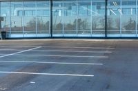 A clear sky hangs over the bustling streets of Toronto, Ontario, Canada. Asphalt roads lead to numerous shops and storefronts, with a busy parking lot in the foreground. A typical day in the city.