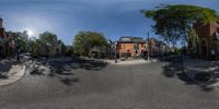 A charming town center in Ontario, Canada, featuring brick buildings and a bustling intersection. The classic architecture and tree-lined streets create a picturesque urban setting. A perfect vacation spot for lovers of city life.