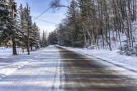 This stunning stock photo captures a winter landscape in Ontario, Canada. The image showcases a snowy road surrounded by a beautiful forest with towering trees covered in snow. The road surface, made of asphalt, contrasts with the white, freezing nature around it. The vegetation, including trees and branches, as well as twigs covered in snow, add a touch of natural beauty to the scene. The cloudy sky enhances the serene atmosphere of the photo. This captivating image is perfect for nature, travel, and winter-themed projects.