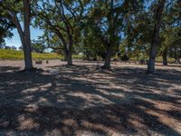 This stock photo features a picturesque open landscape with some very large trees and gravel road surface. In the middle of the trees and gravel, there is one thing that catches the attention, along with two people. The tall trees provide ample shade, creating a beautiful play of sunlight and shadow on the landscape. The clear sky above adds to the serene rural setting. The agriculture and open space give a sense of tranquility and harmony with nature. The image is captured during the day, showcasing the dirt and gravel surface of the road. The hard shadow and sand in the frame add to the overall visual appeal of the photograph.