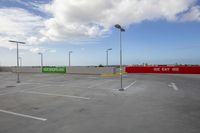 this is an empty parking lot with a sign in it and a few cars in the distance