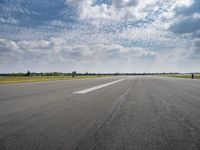 This is an image of an open landscape in Berlin, Germany. The photo shows a wide plain with asphalt roads and recreational areas. The clear sky with cumulus clouds creates a picturesque backdrop. In the distance, there is an airport runway, indicating the location as Tempelhof Airport. The grey road surface contrasts with the green vegetation and land lots surrounding it. This photo captures the natural beauty and open spaces of Berlin, Europe. It represents a day filled with relaxation and outdoor activities in the city of Berlin.