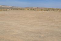 This is an image of the Utah desert in the USA, showcasing the stunning red rock landscape. The open plain is covered in sand and grass, with dirt roads cutting through the terrain. In the distance, the horizon meets the clear blue sky with fluffy white clouds. Trees dot the landscape, providing some vegetation in this arid region. The calm and serene atmosphere reflects the natural beauty of this area. This photo captures the essence of the Utah desert, offering a glimpse into the vast and unique Aeolian Landforms of the San Rafael Swell.