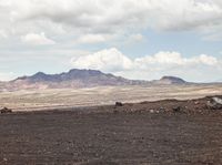 In this image, cows are standing on a barren plain in the desert. The landscape features mountains in the background and clouds in the sky. The open space and dirt surface create a natural and rugged environment. The cows are peacefully grazing, surrounded by the beauty of the highland scenery. This photo captures the essence of the day in the desert, with its vast expanse and elements of nature. The contrast between the hard asphalt road and the soft grass surface reflects the diversity in the landscape.