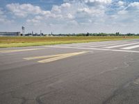 A clear sky stretches over an open space road in Berlin, Germany. The asphalt road surface leads to the horizon, creating a peaceful landscape. The road resembles a runway or a thoroughfare, making it perfect for recreational activities and nature exploration in the park. Experience the beauty of Europe's vibrant city as you navigate this scenic road at Tempelhof airfield.