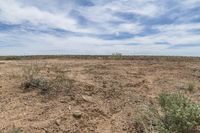 dirt field with a sky and cloud in the background and blue skies overhead over it