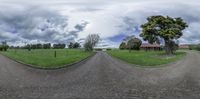 Two identical pictures showing different landscapes. One features an open street with buildings and vegetation, while the other showcases a lush field. Clear skies and green surroundings create a serene natural environment.