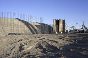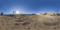 Panoramic view of Orange County, California. The image showcases a diverse landscape, from sandy beaches to snowy mountains. The city's architecture is highlighted, with roads, bridges, and buildings. The clear day offers a stunning view of the horizon.
