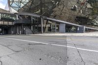 A modern architectural building in the business district of Ottawa, Canada. The glass facade reflects the clear sky and surrounding urban design. Trees and vegetation line the asphalt road, creating a vibrant public space.