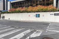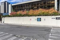 This is an image of a building near a parking lot in Ottawa, Canada. The photo shows a city landscape during the day, with an asphalt road, crosswalk, and urban infrastructure. Next to the building, there are trees and vegetation lining the road. The grey office building stands out against the clear sky with clouds. This photo captures the urban design and city life in Ottawa. It represents the bustling business district with a mix of buildings, crosswalks, and traffic. The image showcases the intersection of nature and urbanity in Canada's capital city.