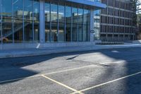 A modern office building in the heart of Ottawa's business district. The sleek facade and glass windows reflect the vibrant city life. The hard shadows cast by the tall buildings create an urban ambiance.