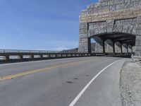 A scenic view of the Pacific Coast Highway in California. This iconic highway, characterized by its concrete bridges and coastal scenery, runs along the breathtaking Big Sur coastline. The clear skies and ocean provide a stunning backdrop for this architectural marvel.