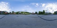 this is a view of a park from the ground of an upside down photo taken by a fish eye lens